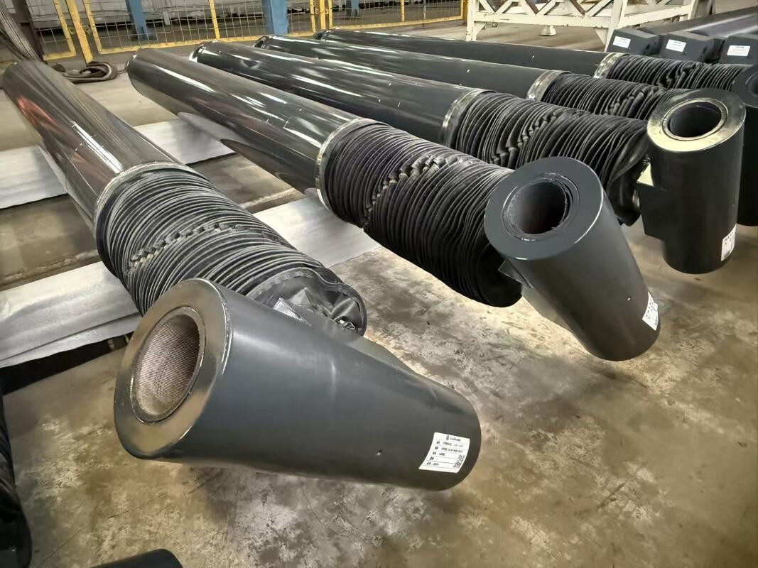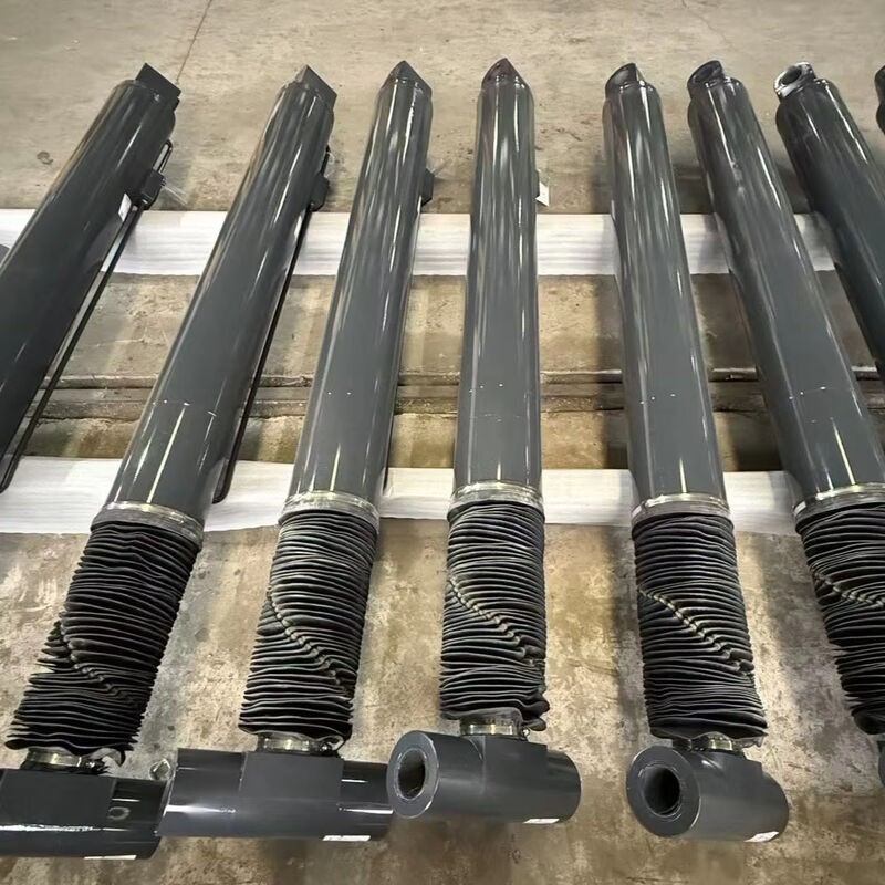 Cilindro hidráulico profesional de alta presión con superficie cromada dura y cubierta protectora para aplicaciones industriales exigentes.